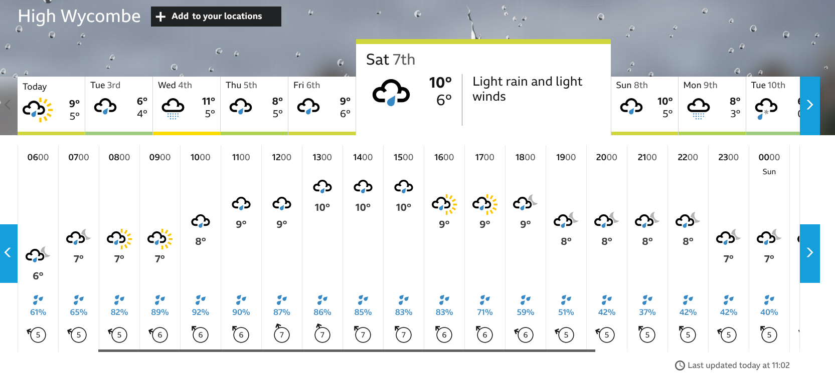 Below is the weather forecast for Saturday according to the BBC. I believe that would say that it should be labelled - this information is highly unreliable, so no-one should rely on there being a ray of sunshine during the match, or indeed rain as it starts.