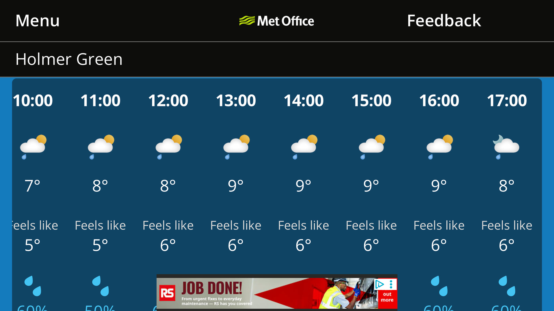 Below is the weather forecast for Saturday according to the BBC. I believe that @micra would say that it should be labelled - this information is highly unreliable, so no-one should rely on there being a ray of sunshine during the match, or indeed rain as it starts.