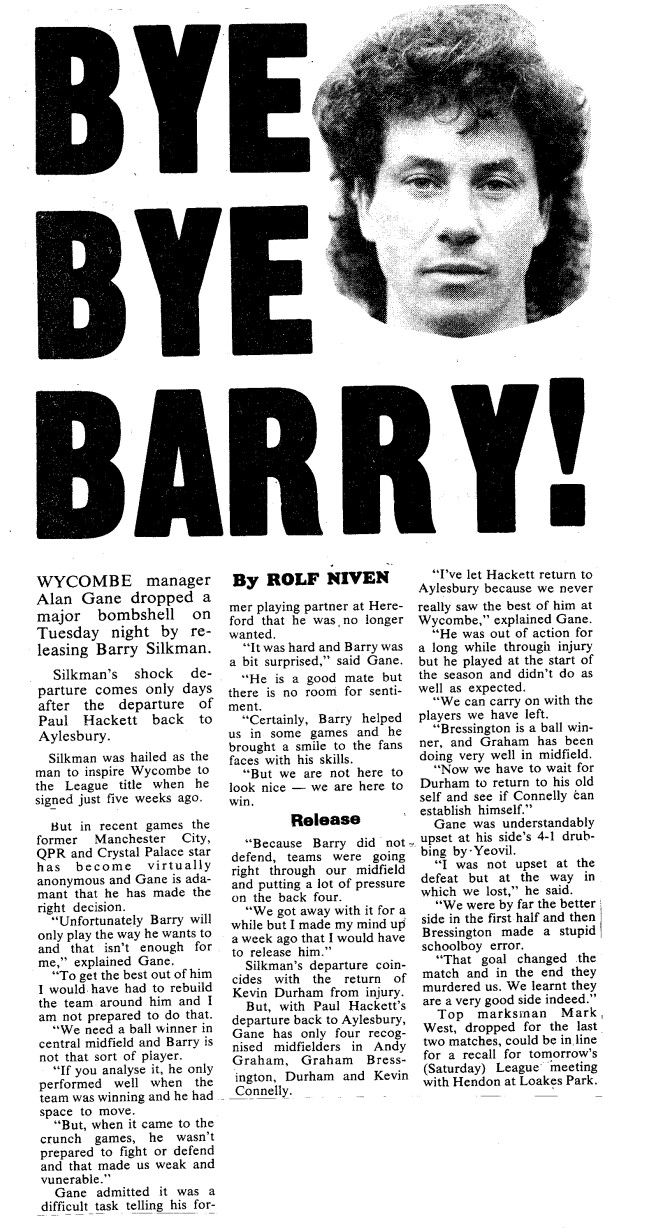 Does anyone remember much about Barry Silkman and his 8 (I think) games for Wycombe?