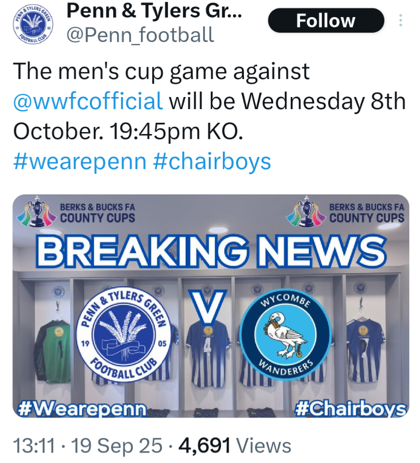 Great draw for Penn. I was lucky enough to manage them some 30+ years ago and we won the Wycombe Senior cup in that period.