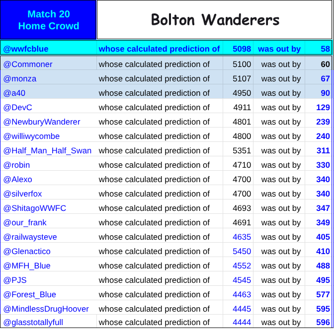 Many congratulations to @wwfcblue who who was closest.