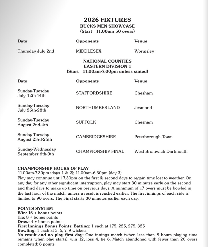 There have been a few changes in the Bucks team over the winter. Captain Alexei Kervezee has departed to take up Lead 2nd XI and Assistant Coach positions at Worcestershire, where he started his First Class career. The new captain is Conner Haddow who pretty much single-handedly bowled Bucks to victory in the Three Day Championship last season. Also departing is opener Cameron Hemp, to Usk CC, and wicketkeeper Ross Richardson.