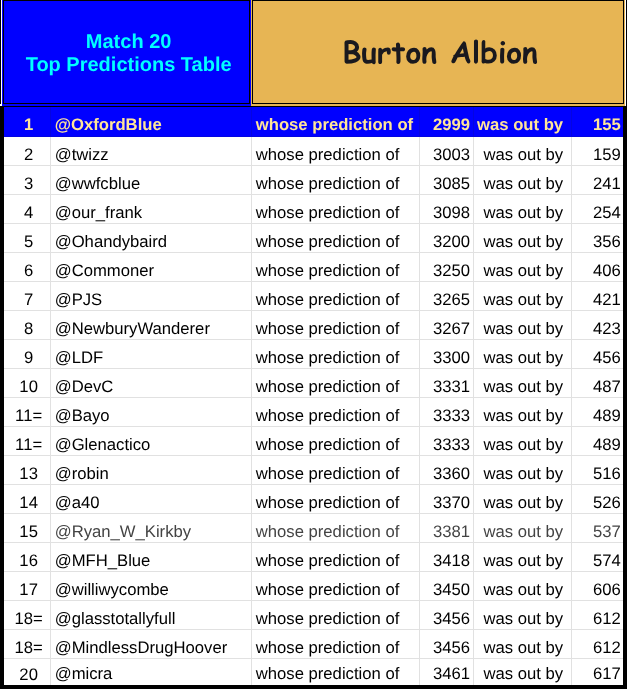 Many congratulations to our esteemed moderator @OxfordBlue who is Forecaster of the Week this week - for a match we all overestimated the attendance.