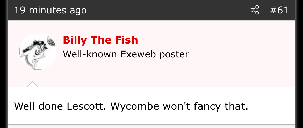 I’m off to the Burton game the week after, can’t justify two long away trips on the bounce when it’s effing Exeter. I’m sure they’re equally as thrilled.