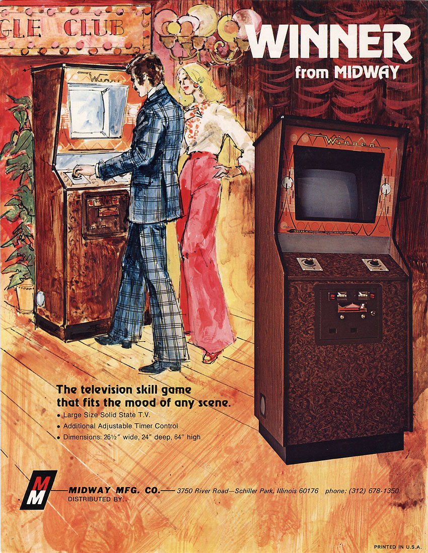 I bought a Midway ‘Winner’ cab last week. It’s a 1973 Pong clone. It’s still running on relays in the back and a black and white tv set!