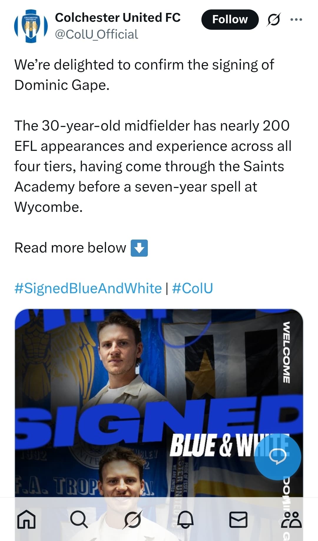 Heard a rumour Dom Gape is off to Col U. Or is that old news?