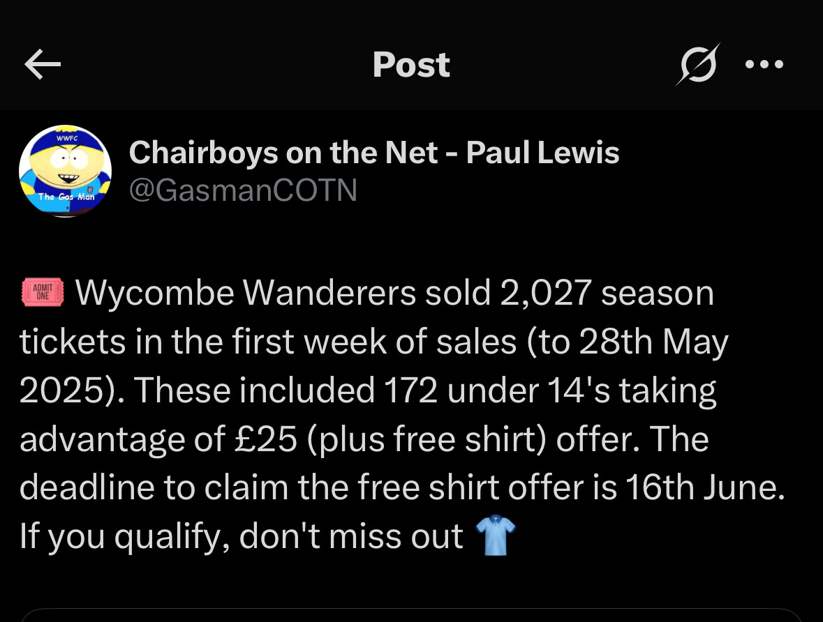 I’m surprised it’s only 172 child tickets. Although I can’t imagine we had more than 2,500 STH last term in total so that seems like a relatively decent figure.