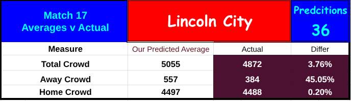 A serious overestimate of those attending from Lincolnshire, which led to a slight overestimate of the total crowd because we were very near to spot on with the home crowd when averaging our 36 predictions.