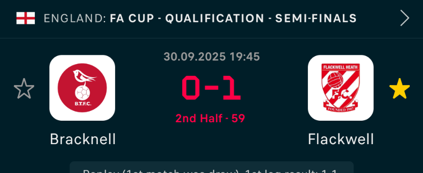 Flackwell 0-0 at HT in their cup Replay at Bracknell.