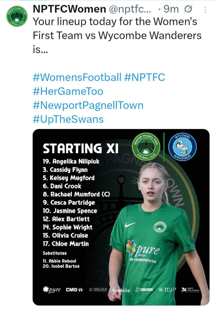FT NPT 0-2 WW. A deserved win, in control after the break, our keeper was only tested once all game, our defence gave their strikers very little. Their back four and keeper were very good, our front three didn’t have the space they normally have. The Swans are a good side, they would be comfortable in our division. About 70 watching