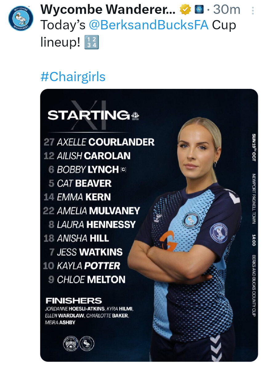 This season Chloe Martin has six goals, new signing Cesca Partridge has five. Tricky No. 10 Jasmine Spence is a particular threat. The Chairgirls and the Swans met in the Sponsors Cup this season, a 5-2 home win at Burnham, scorers in that match were not disclosed.