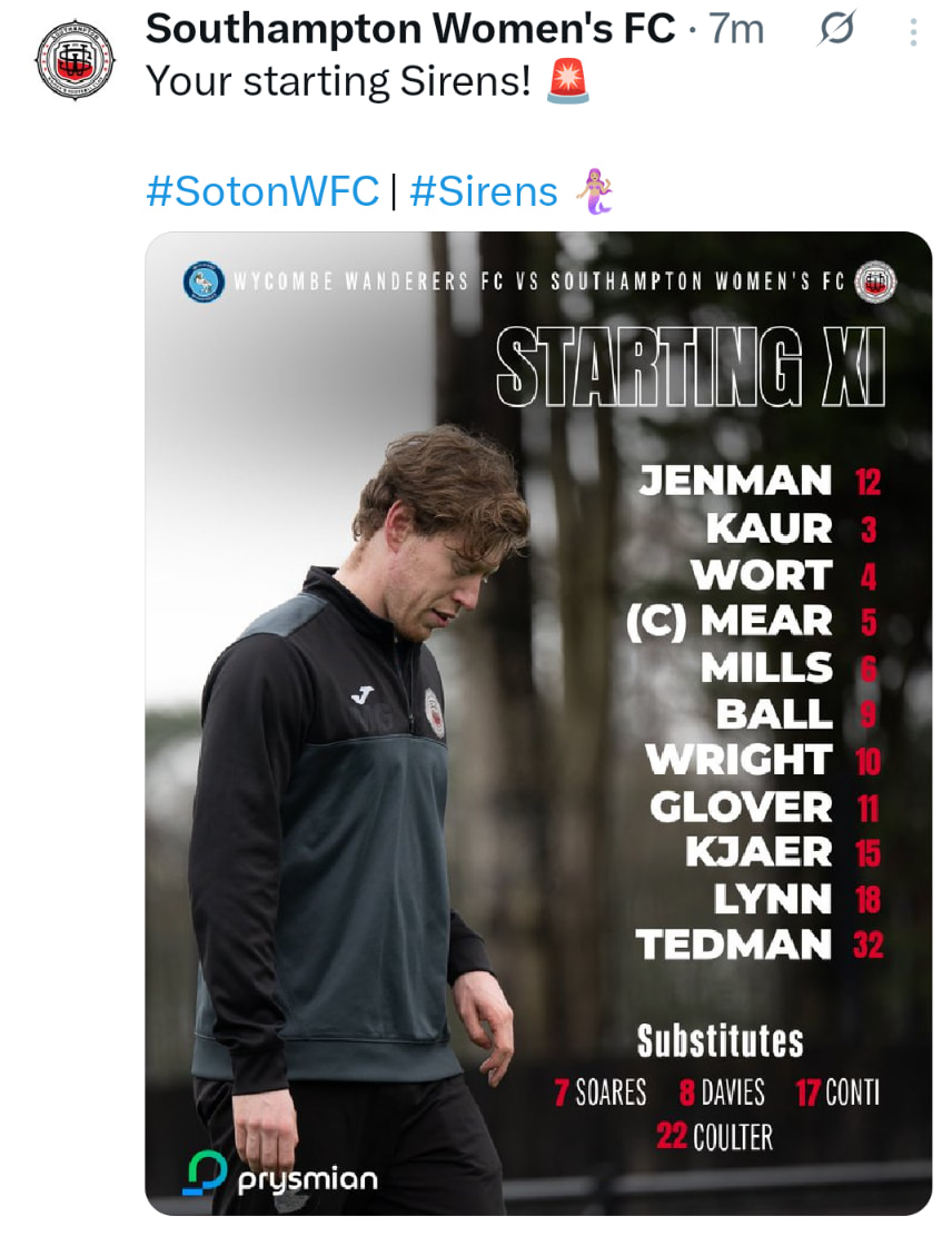 Southampton Women’s FC, not to be confused with WSL2 side Southampton FC Women, had a rebrand in 2022, with a new crest and adopted “The Sirens” as their nickname, to separate them from the other team - “we are not the Saints”. To quote their website: “Inspired by the mythical sea creatures of Greek legend, the Sirens symbolise both beauty and danger. As well as playing the game the right way, while shipwrecking anyone who dares to enter our waters.” Heady stuff!