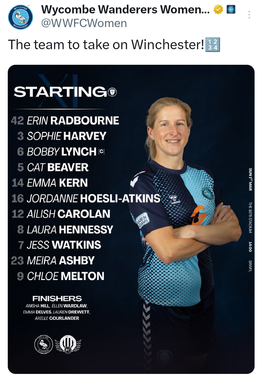 Today’s team, a welcome return to the squad, on the bench, for Emma Delves after her long term injury.