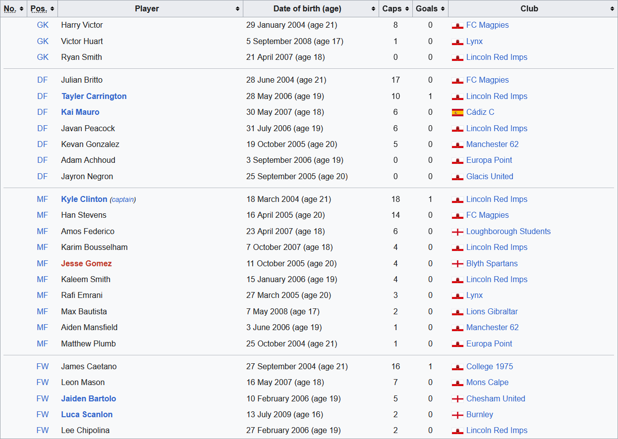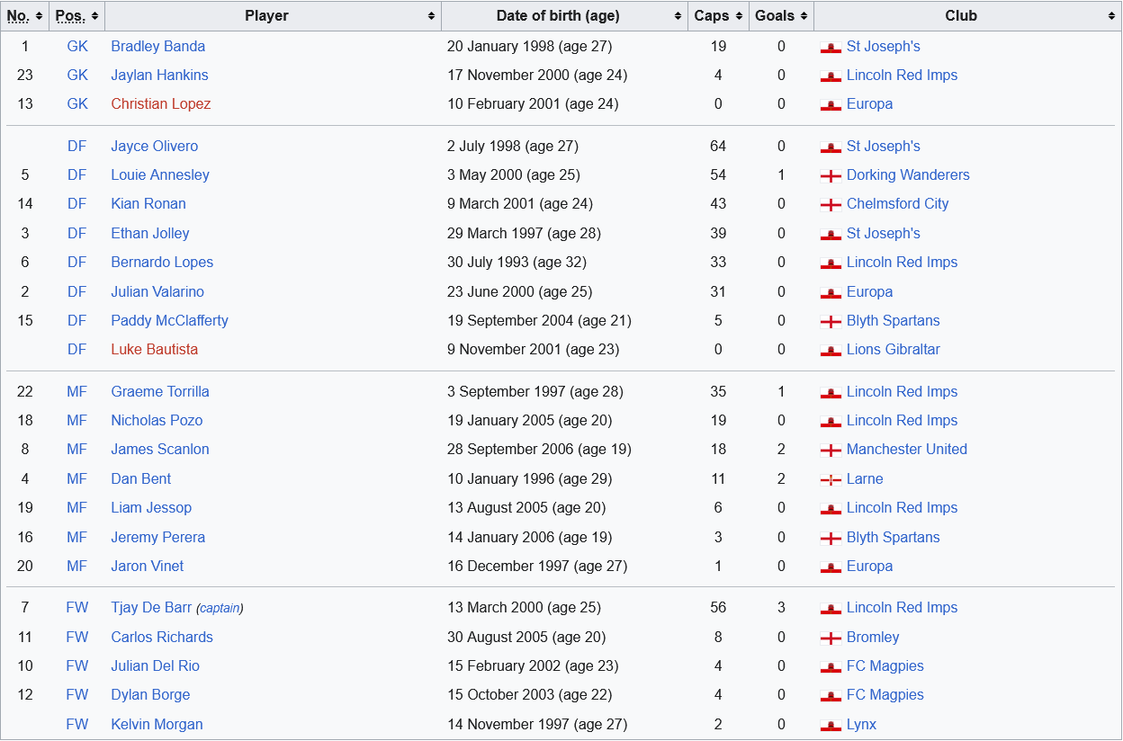 Jaiden Bartolo again in the Gibraltar U21s squad this month - playing pool is a bit streched this time because the seniors, U21s and U19s are all playing at the same time so a few who had been playing in a higher age category have had to drop down a level. Senior team is probably their oldest since Wiseman took over, including a striker who hasn’t been called up in 3 years.
