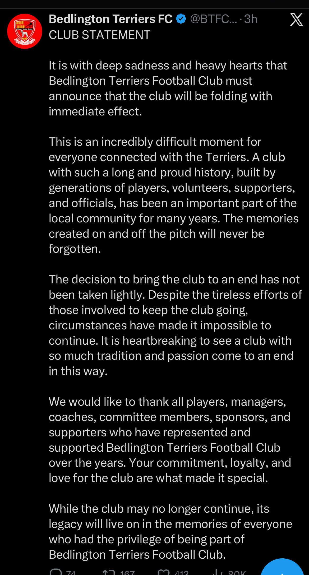“Happy birthday to Mr James Bedlington from Terriers who is 41 today.”
