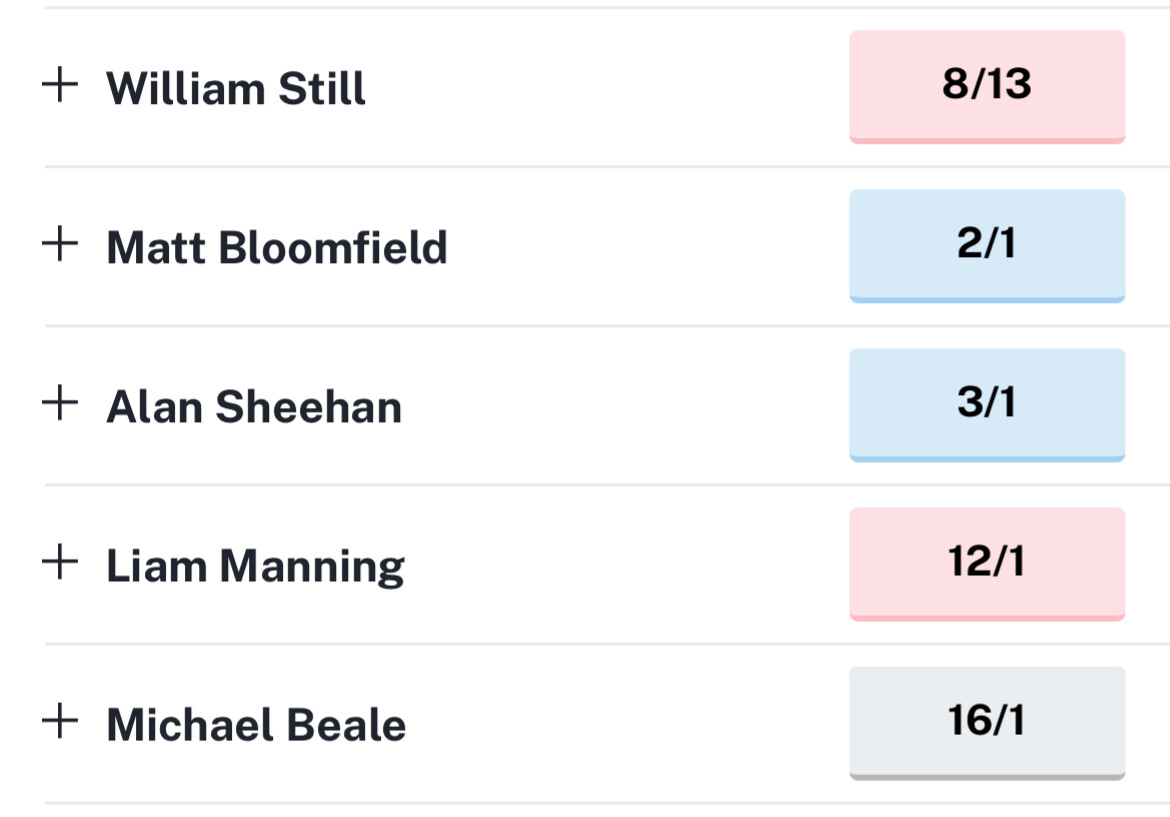 As ever the odds for next Headington manager seem to fluctuate wildly with the faintest hint of speculation, but here’s the latest, for what it’s worth:
