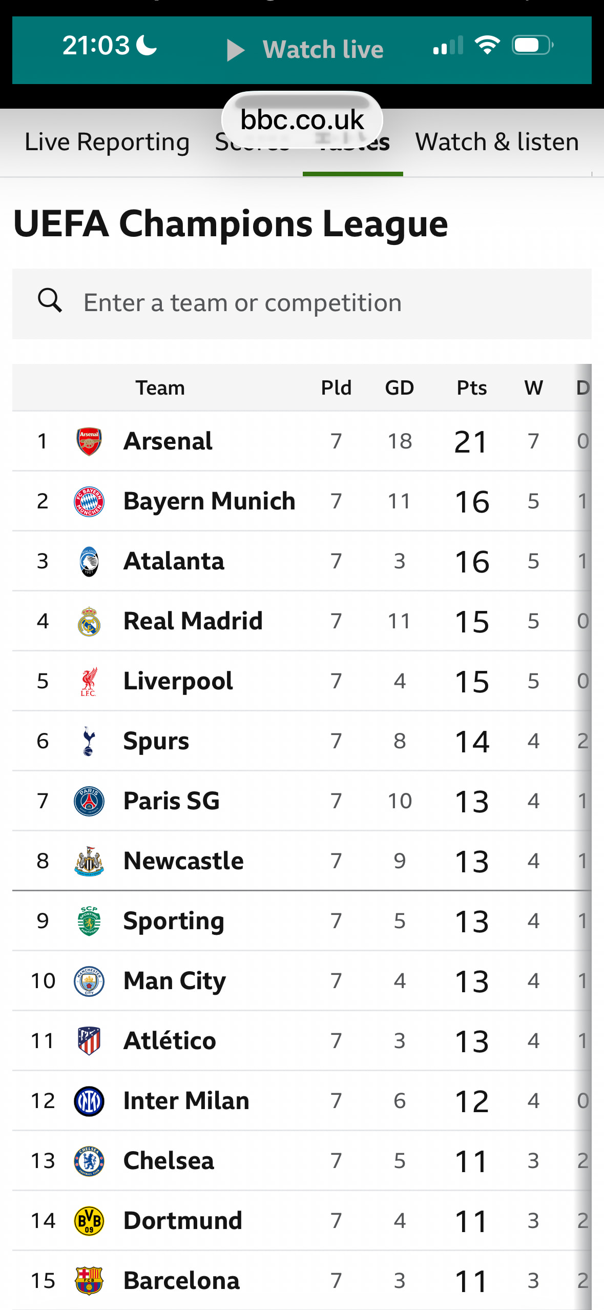 Should Chelsea win against Pafos tonight and other results stay the same you will have six of the first 11 teams in the Champions League table are English.