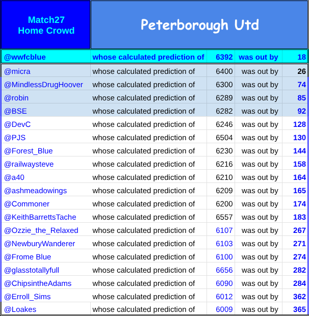 Welcome to @KeithBarrettsTache predicting for the first time to my knowledge, you were a respectable mid table 25th for the total crowd and you featured in the top twenty for the away and home top twenty tables below.