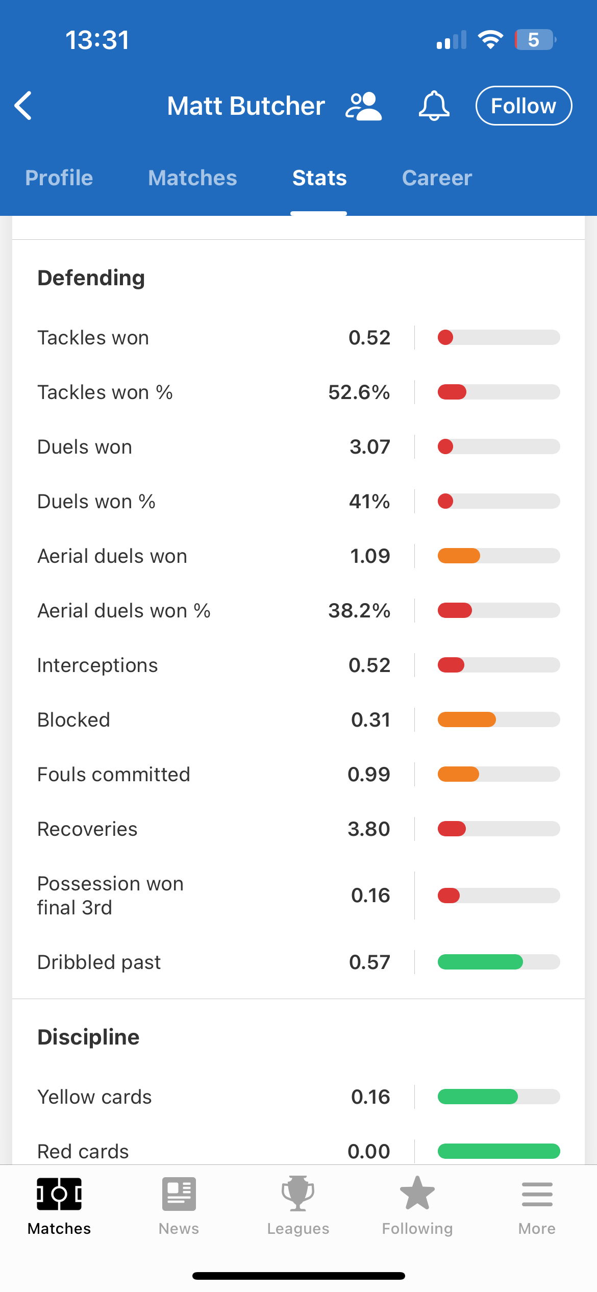 I see it’s silly season again on the forum. Matt Butcher was poor in almost every game he featured in for us. Rightfully left out of the squad when we had a midfield triangle of Morley, Scowen and Humphreys. Went on loan to Bristol Rovers and went on a shocking run of form and they ended up relegated. Here are Butcher’s key defensive stats as percentiles compared to other League 1 midfielders.