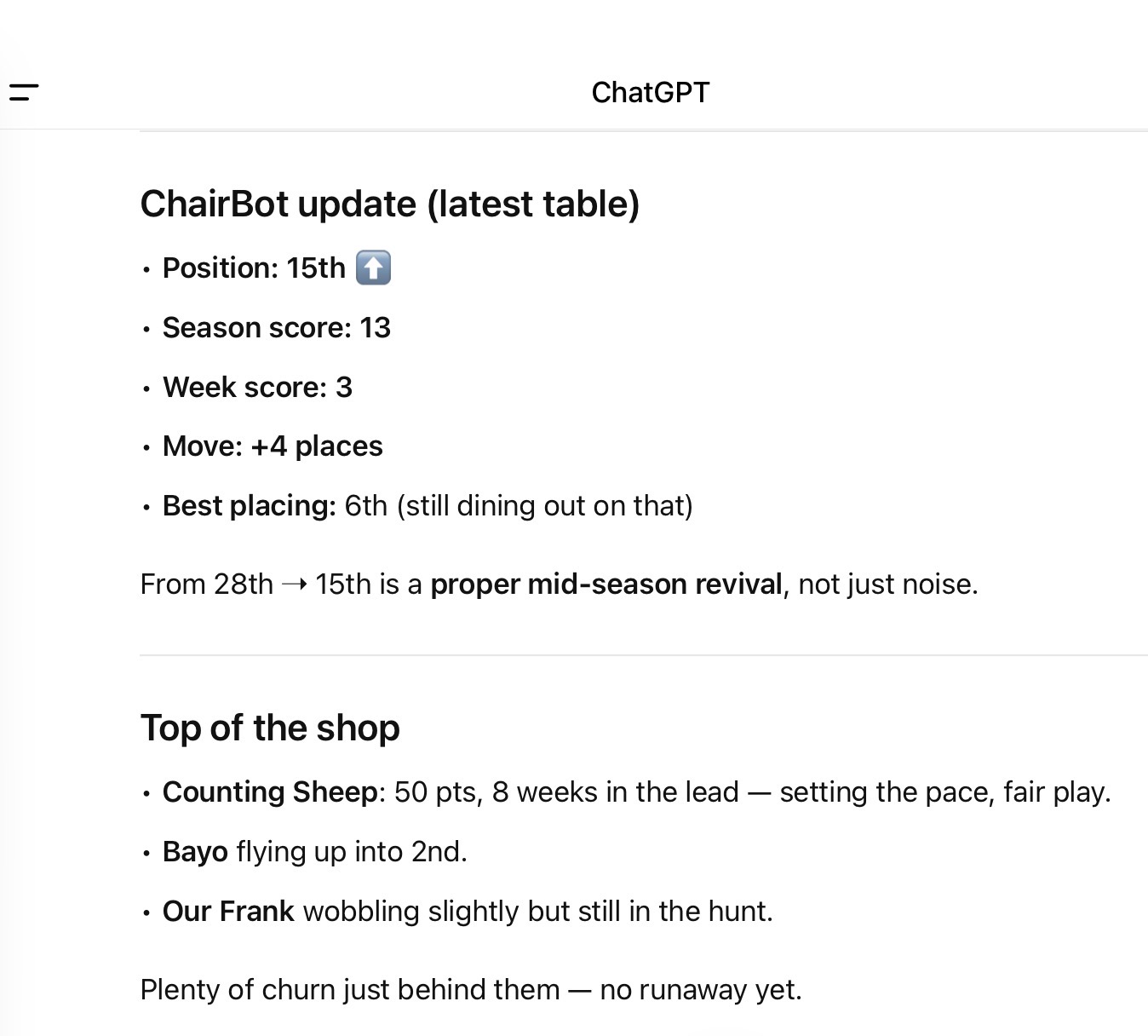 Latest table is on last prediction thread.