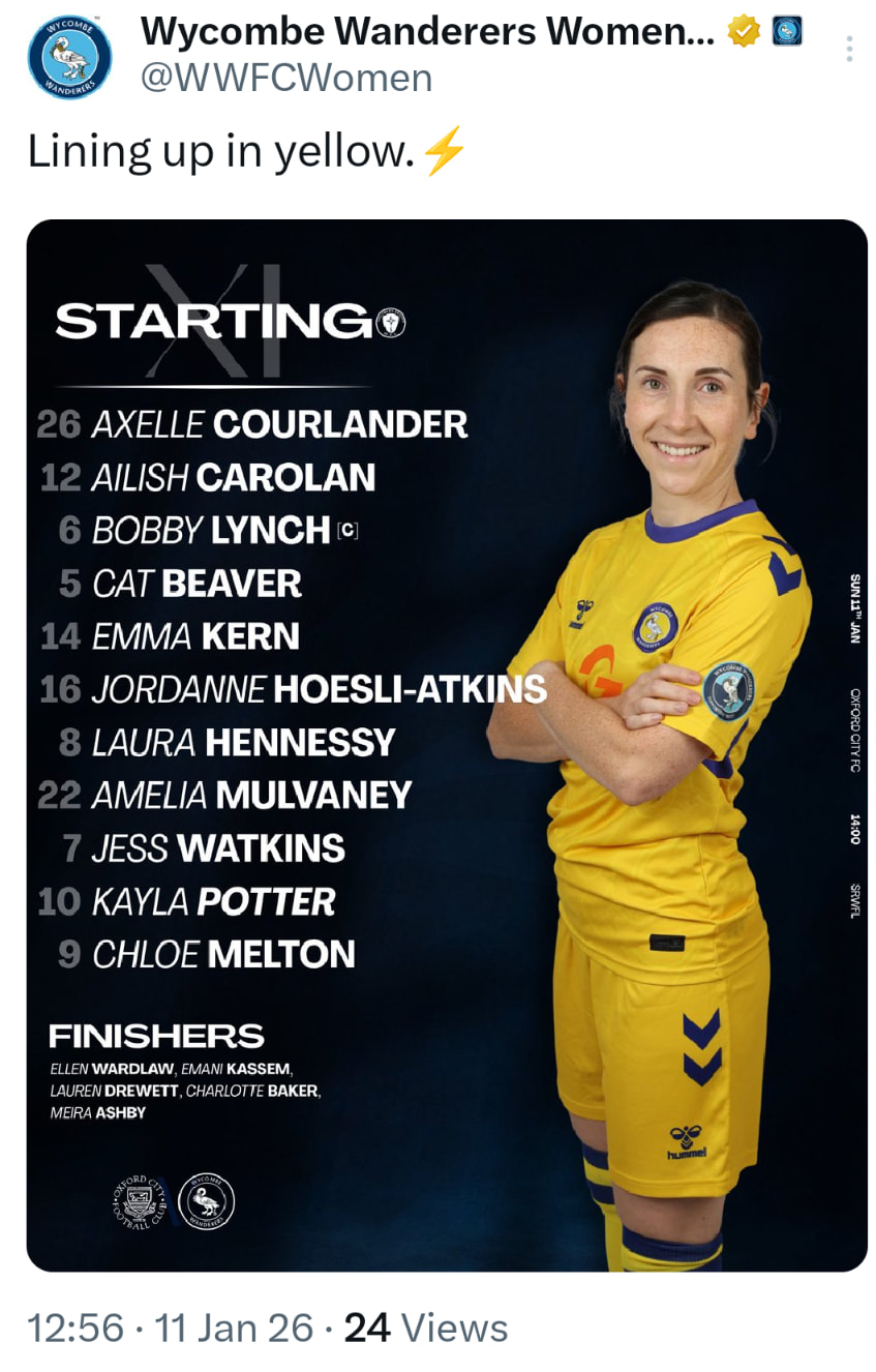 Today’s lineup. There is a new player in the squad, Lauren Drewett.