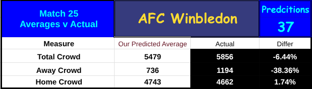 A smallish underestimate of the total crowd coupled with what was (with a handful of creditable exceptions) a massive underestimate of the away crowd, meant we collectivley had a small overestimate of the home crowd.