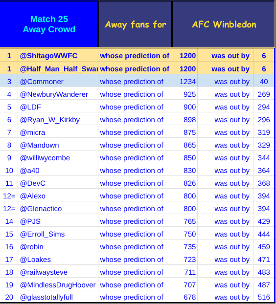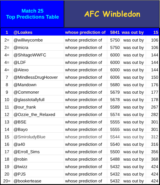 Many congratulations to @PJS for being closest and actually very close to the home support. Congratulations also to @OxfordBlue. @a40. @Glenactico, @MFHBlue. @Erroll_Sims, @Monza and @robin for being within one hundred.